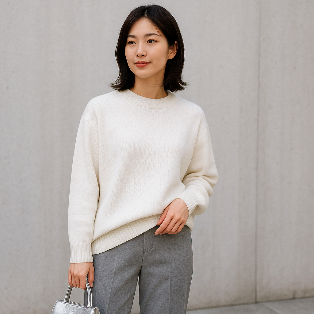 💡Tip: グレーは「影の色」。白を引き立てながら、柔らかく見せる最強のパートナー。