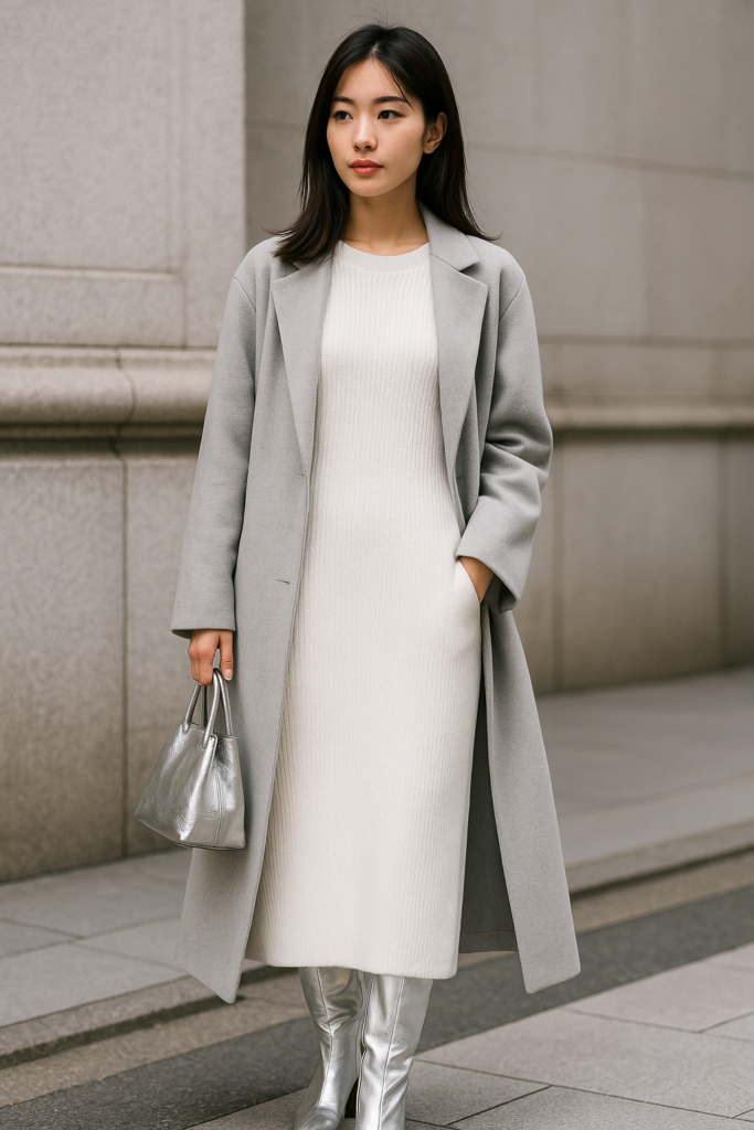 2025年冬は、「白×メタリック」や「白×グレー」のレイヤードが人気です。