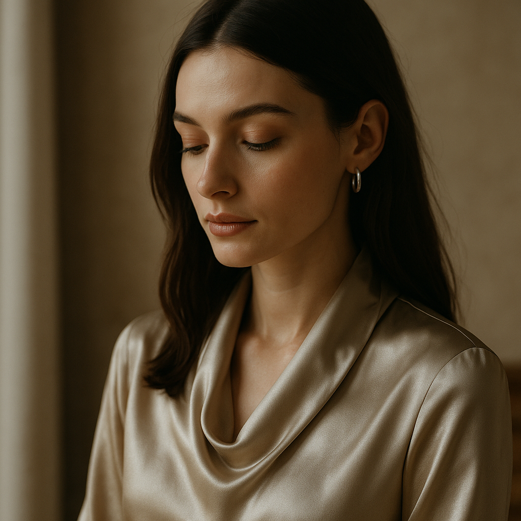 グレージュ寄りの輝きが、控えめな華やかさを生み出す。