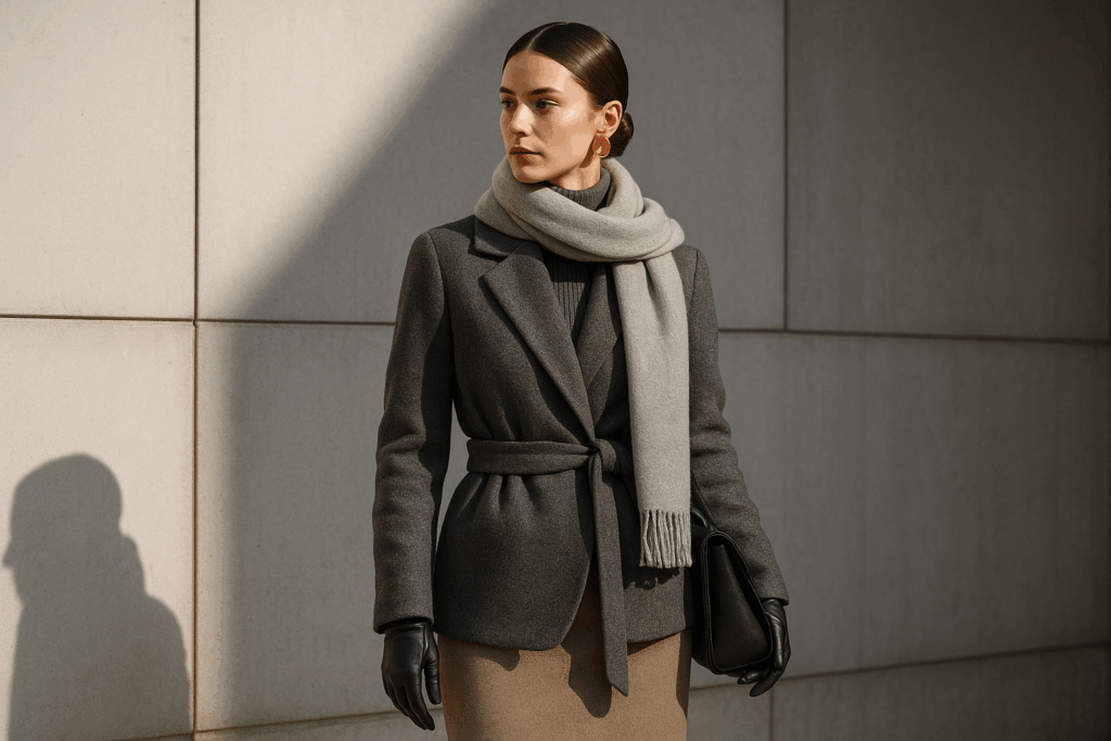→ 温もりと洗練を両立した“軽やかな防寒”。