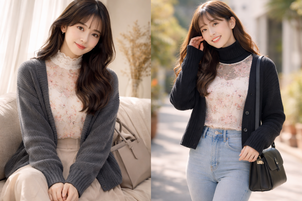 ニットやカーディガンに合わせても浮かず、春まで長く着られる——それが2026年の花柄。