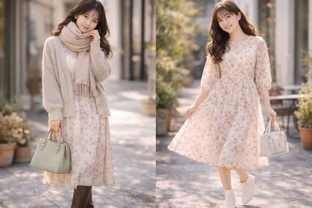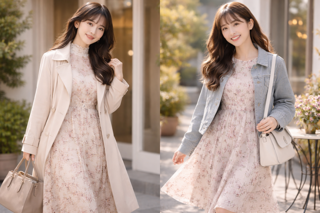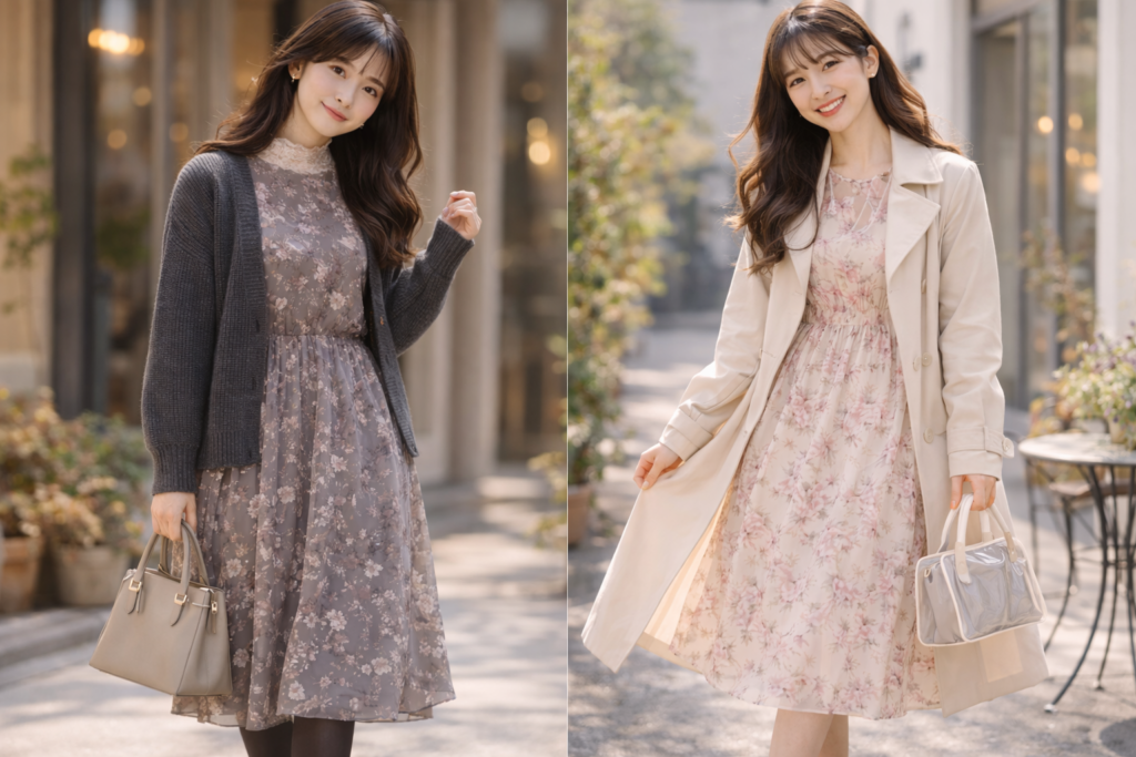 2026年の春は、重ねる・羽織るワンピーススタイルが主流です。